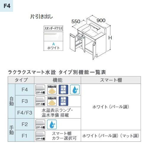 ※ラクラクスマート水栓(F1:マット調)と二段引き出しタイプの組み合わせは、レールの仕様が異なります。