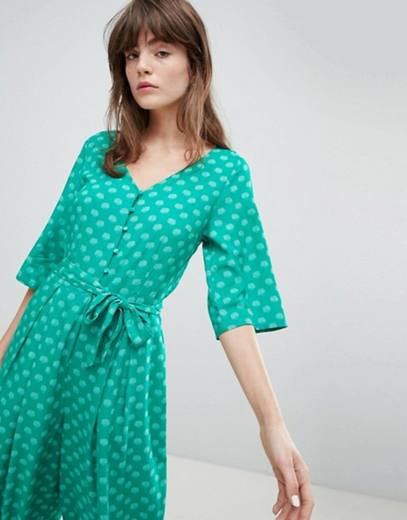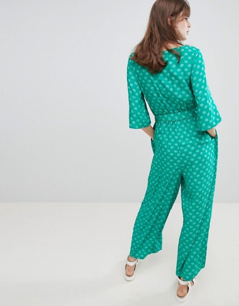 モンキ レディース ワンピース トップス Monki Seashell Print Tie Front Cropped Jumpsuit Green